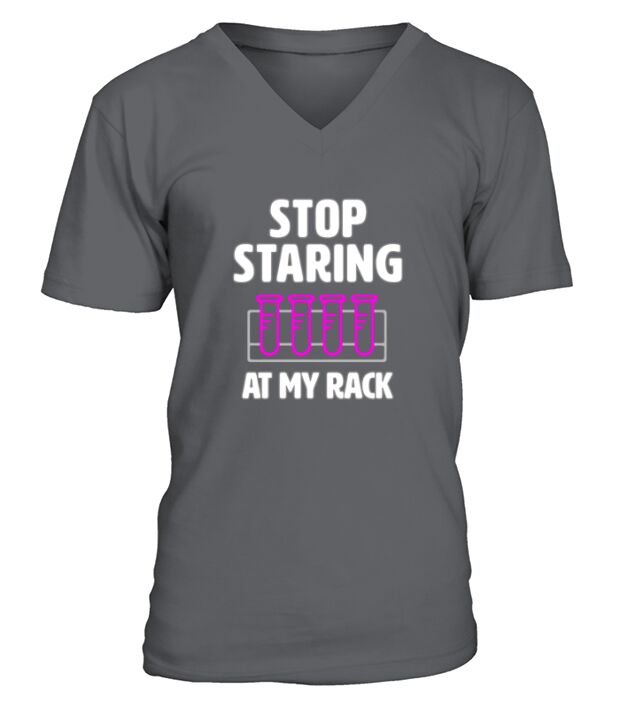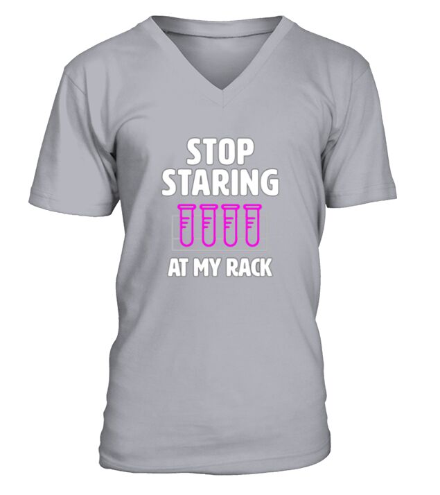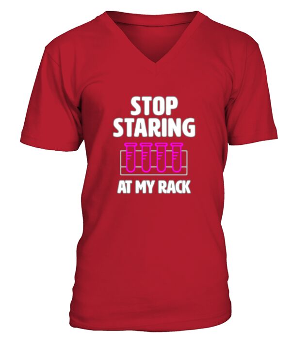 Shop Stop Staring At My Rack V-Neck T-shirt custom made just for you. Available on many styles, sizes, and colors.