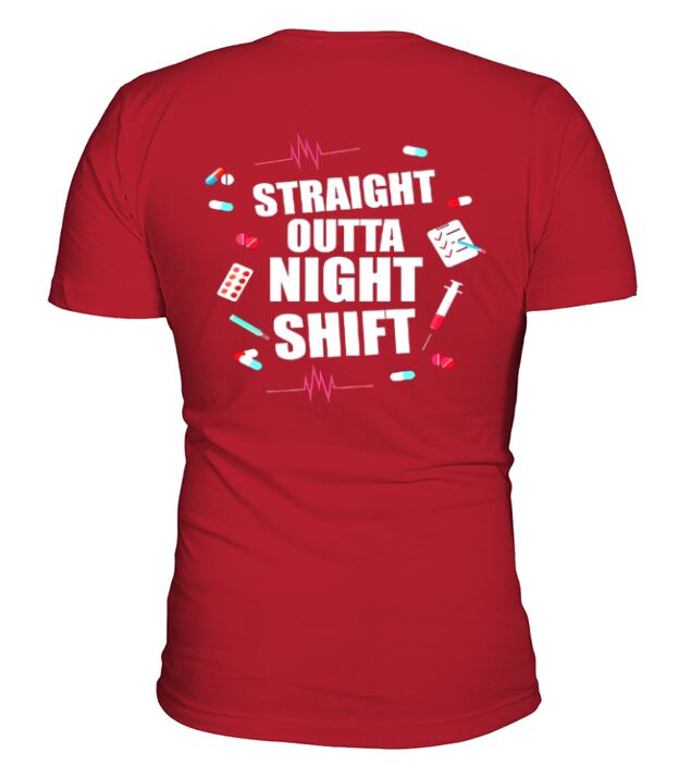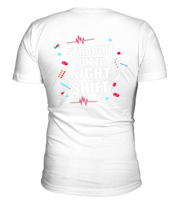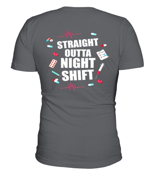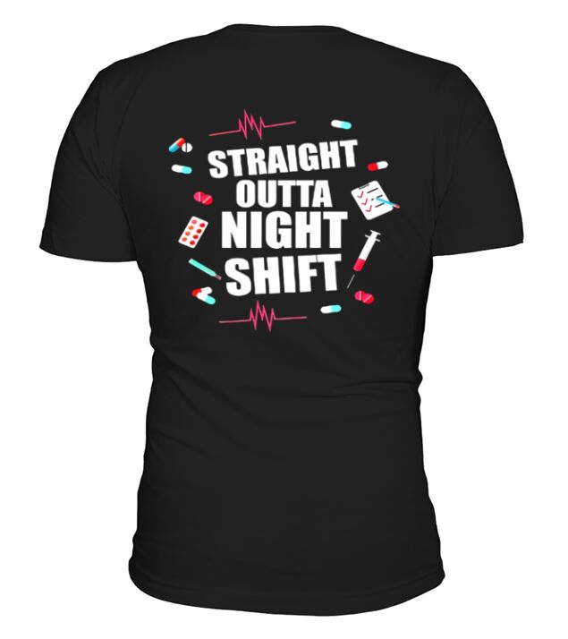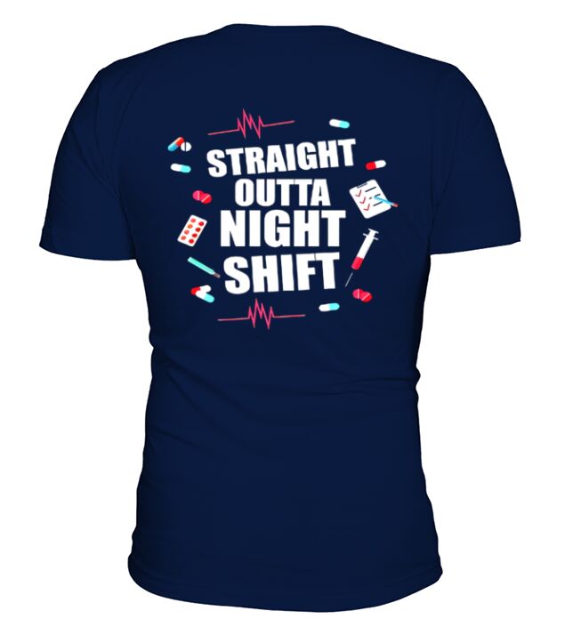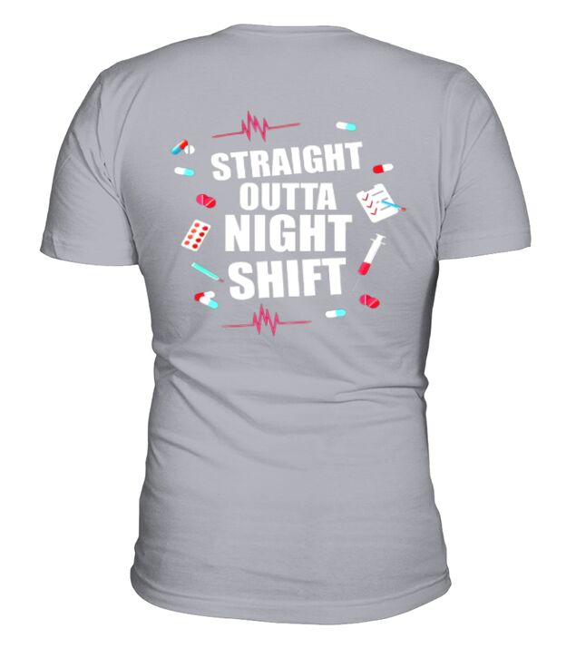 Shop Straight Outta Night Shift V-Neck T-shirt custom made just for you. Available on many styles, sizes, and colors.