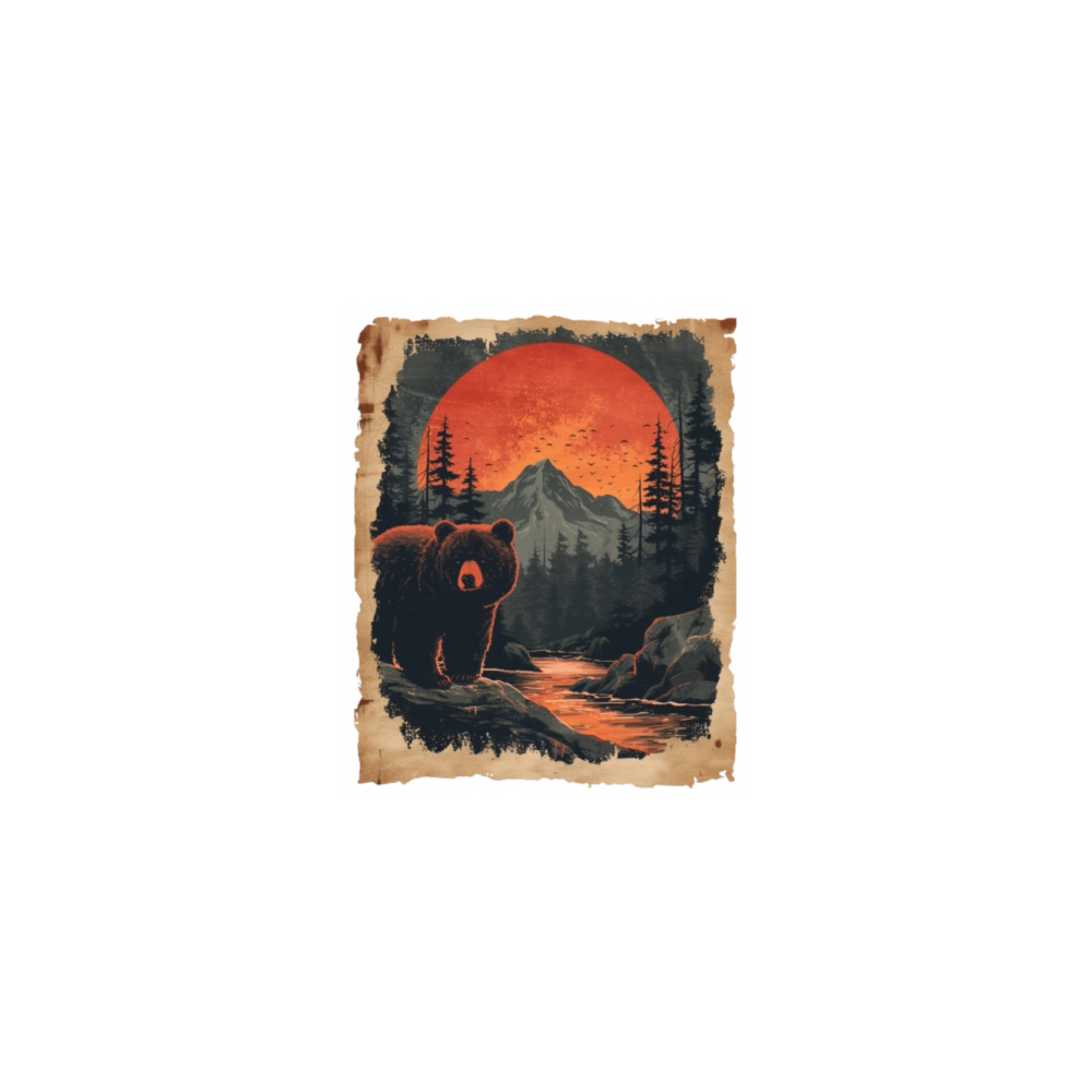 Sunset Scenery Papyrus Scroll Japanese Art Bear