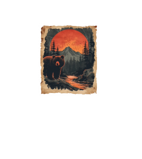 Sunset Scenery Papyrus Scroll Japanese Art Bear