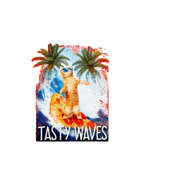 Tasty Waves Kitty Cat Surfing on Pizza