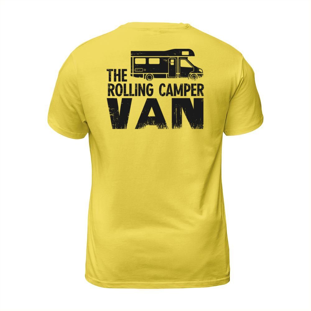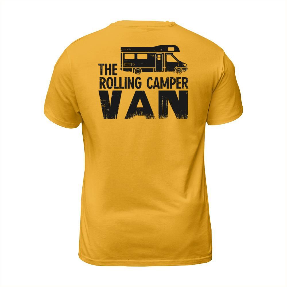 Shop The rolling Camper van T-Shirt Unisex custom made just for you. Available on many styles, sizes, and colors.
