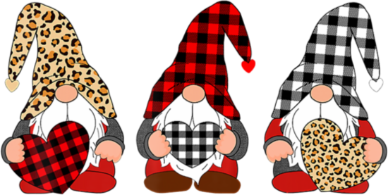 Three Gnomes Holding Leopard Heart Plaid Valentine