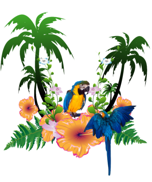 Tropical design with palm trees and parrot