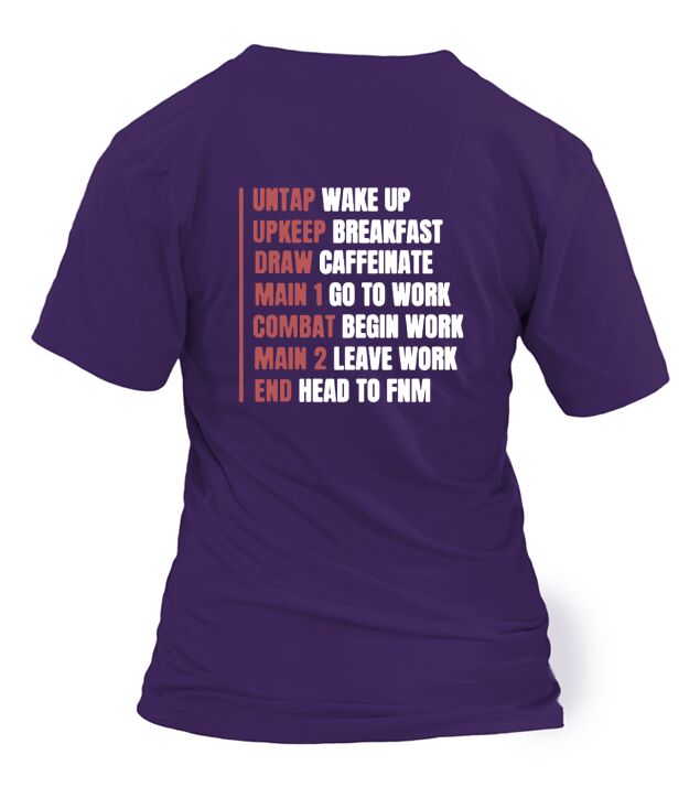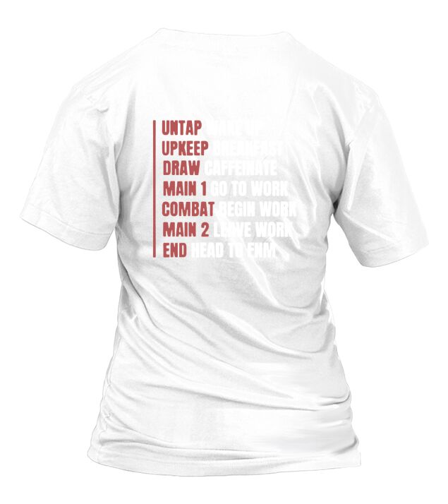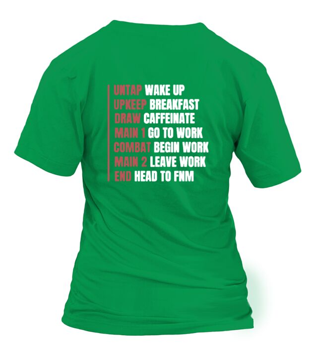 Shop Untap Wake Up Up Keep Breakfast Draw Caffeinate Mtg Phases Of Life T-Shirt Woman custom made just for you. Available on many styles, sizes, and colors.