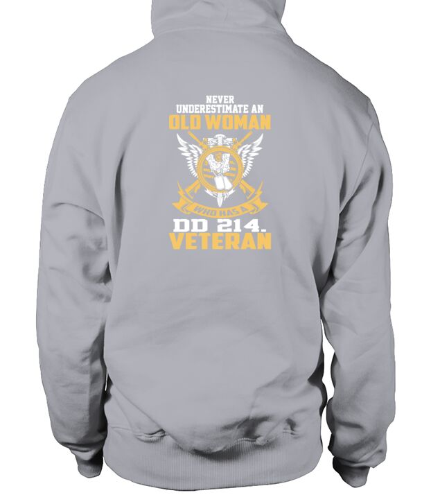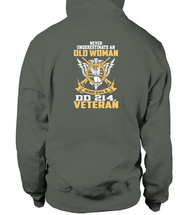 never under estimate an old woman who has a dd214 hoodie unisex
