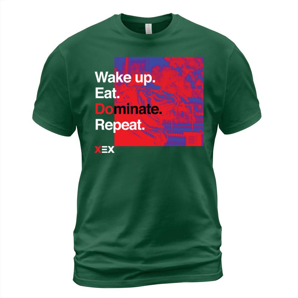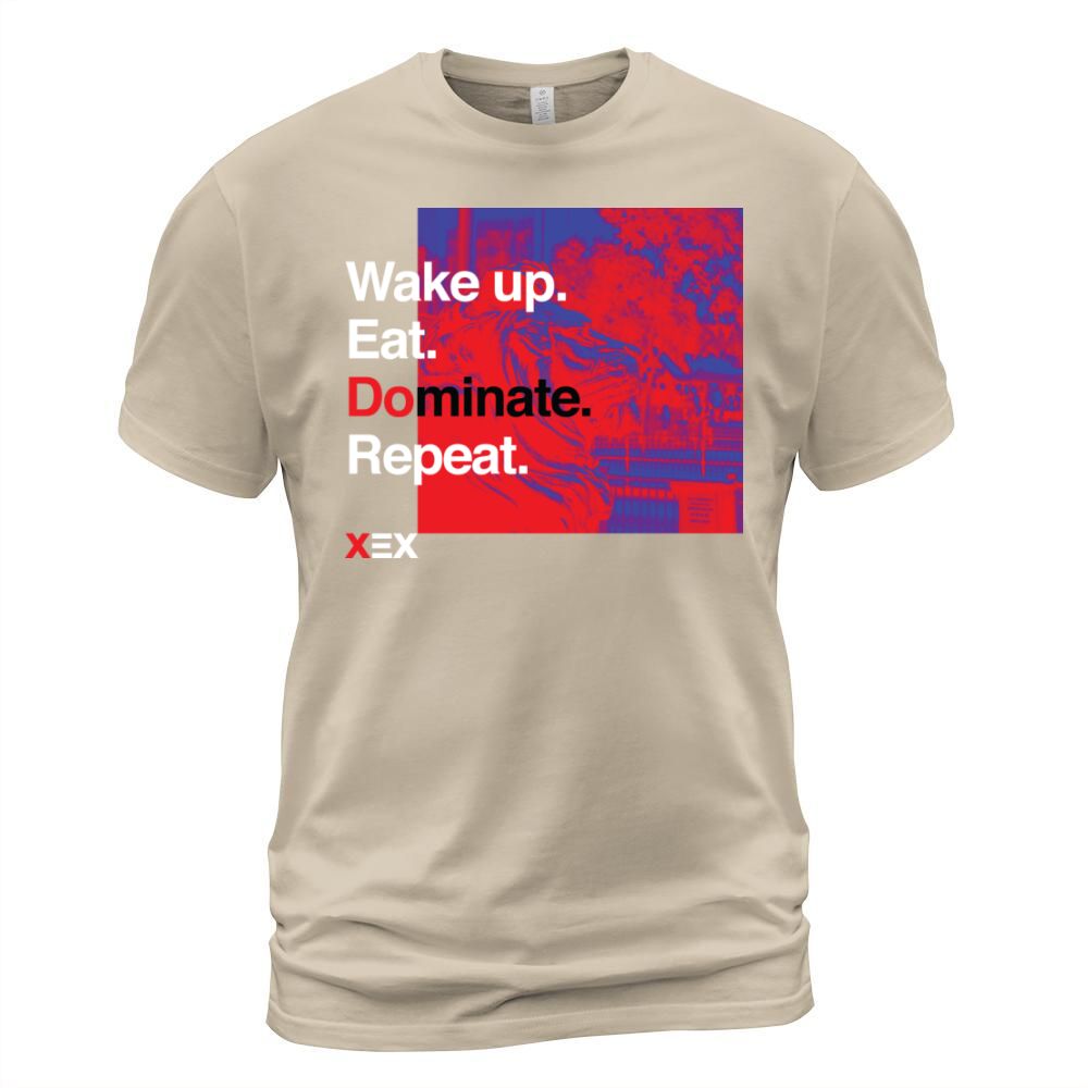 Shop Wake up. Eat. Dominate. Repeat. T-Shirt Unisex custom made just for you. Available on many styles, sizes, and colors.