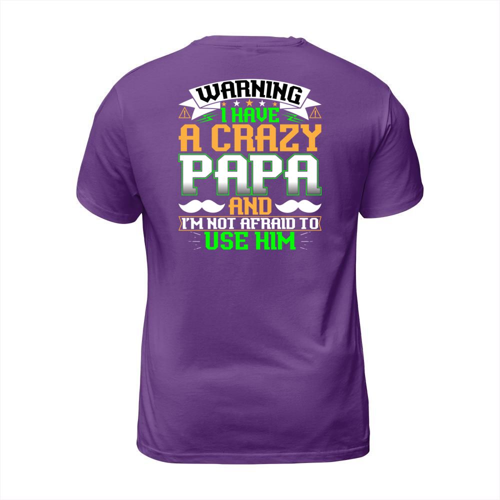 Shop Warning I have a crazy papa and Im not afraid to use him T-Shirt Unisex custom made just for you. Available on many styles, sizes, and colors.