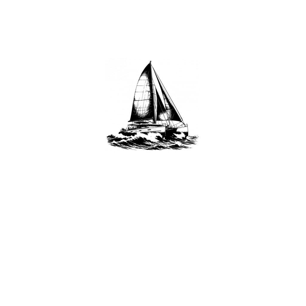 Waves And Catamaran Sailboat In Waves