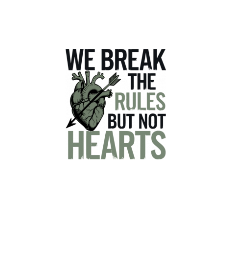 "We Break the Rules But Not Hearts" Bold Design