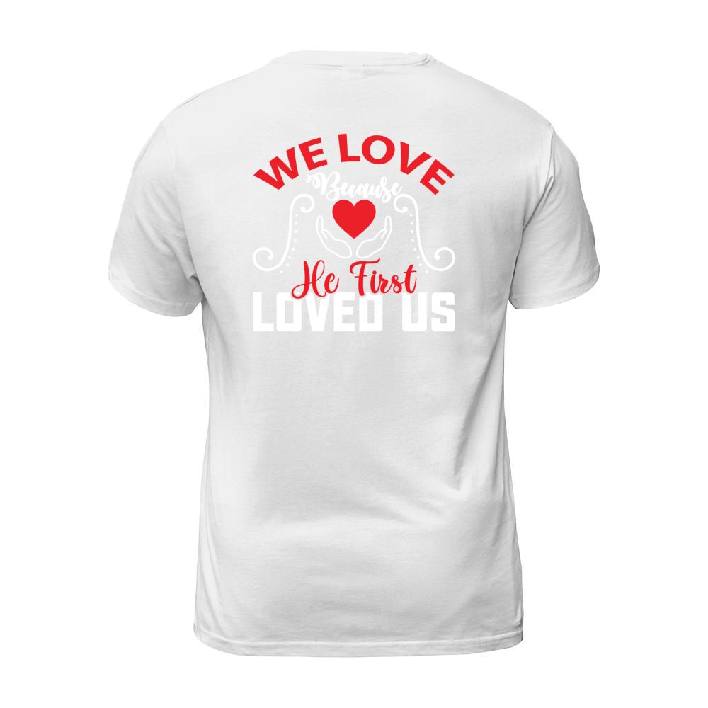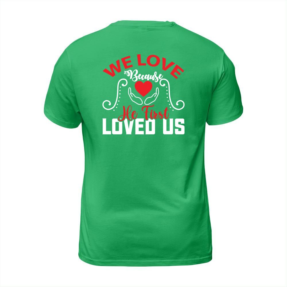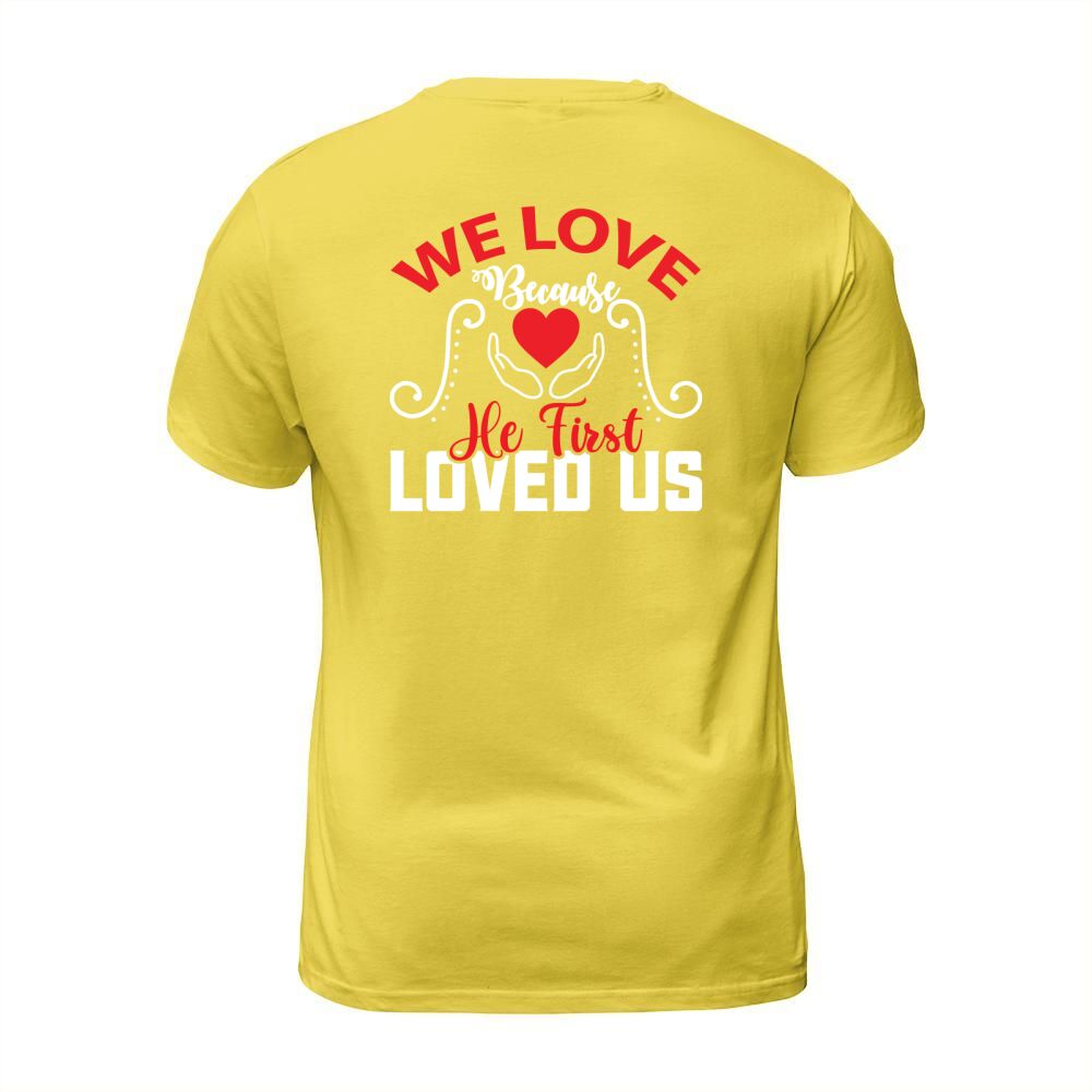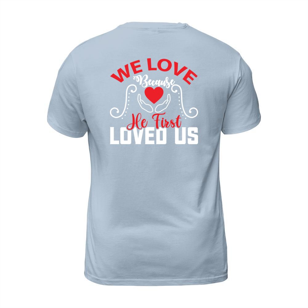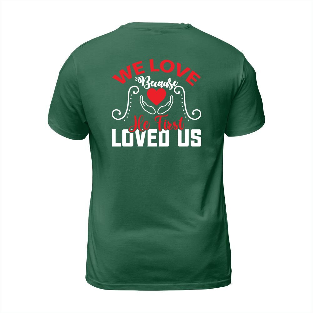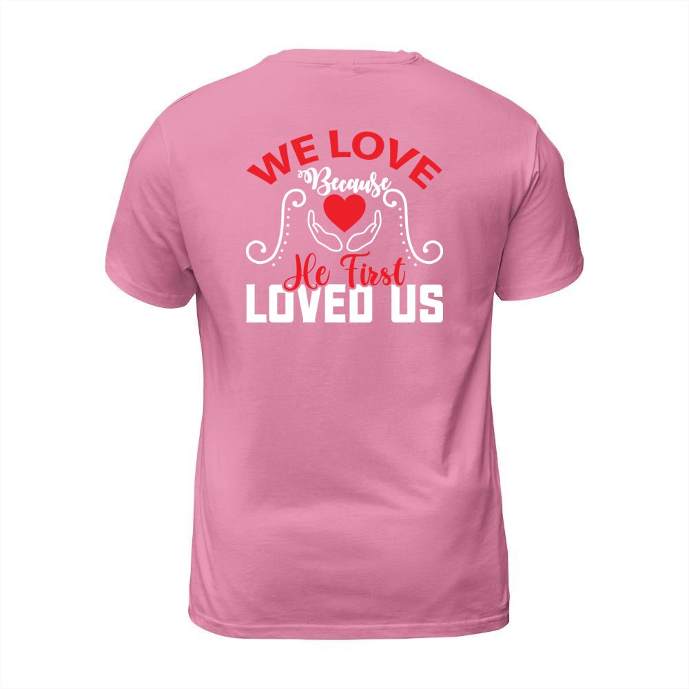 Shop We love because he first loved us T-Shirt Unisex custom made just for you. Available on many styles, sizes, and colors.