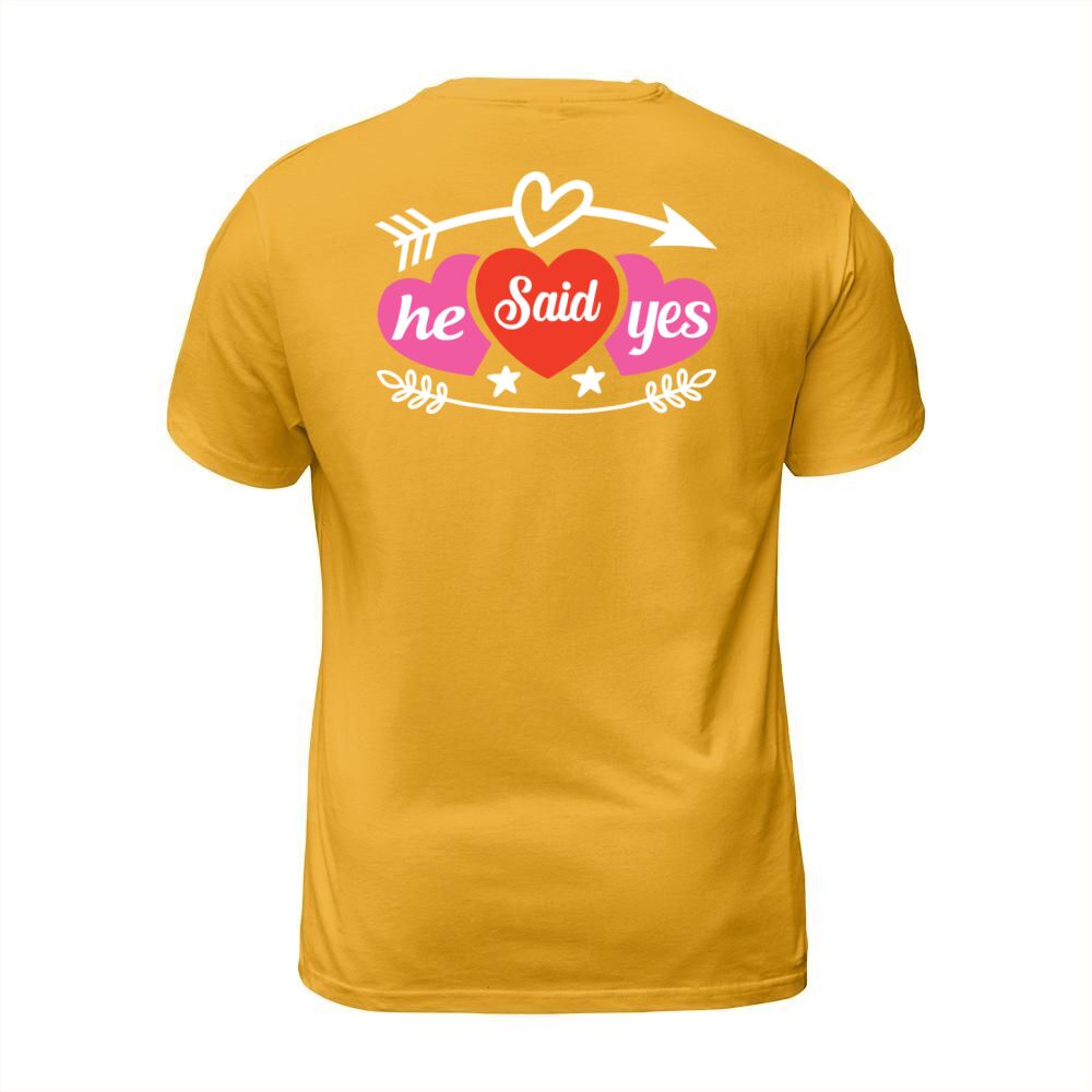 Shop Wedding He said yes T-Shirt Unisex custom made just for you. Available on many styles, sizes, and colors.