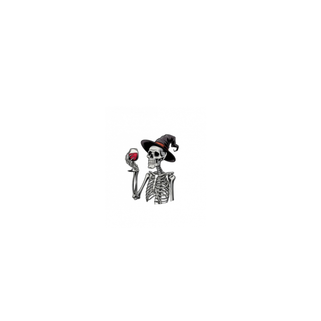 Witch Way to the Wine Halloween skeleton quote