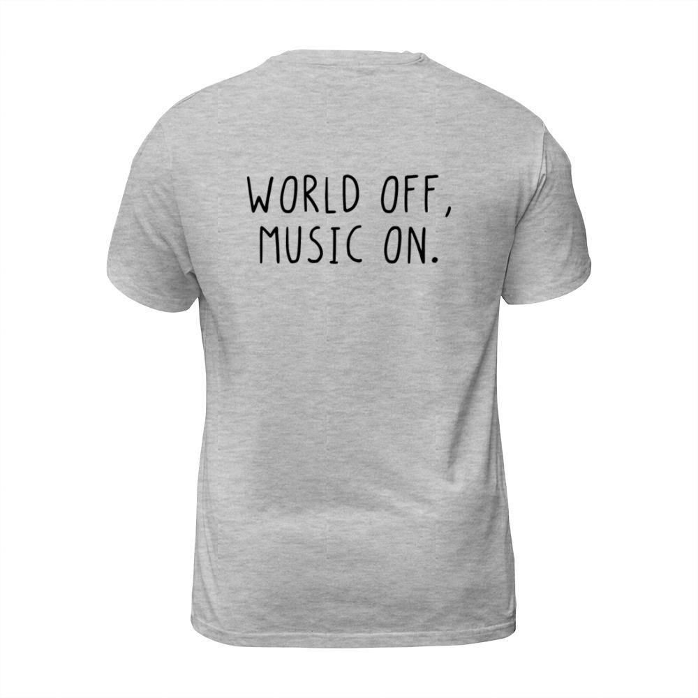Shop World off music on T-Shirt Unisex custom made just for you. Available on many styles, sizes, and colors.