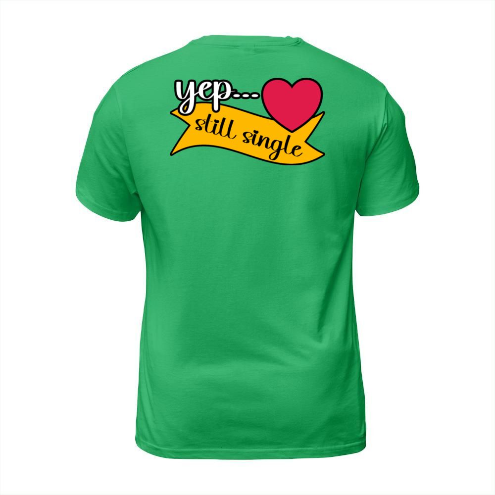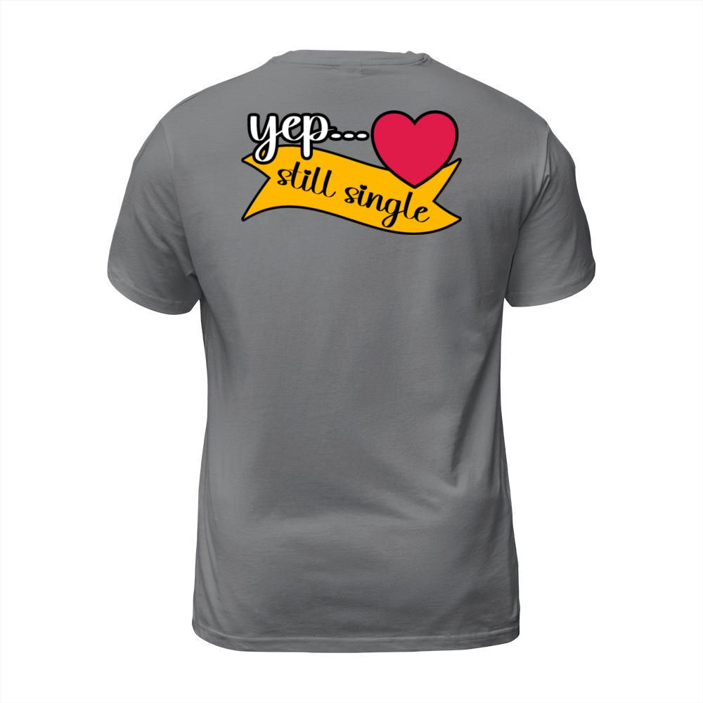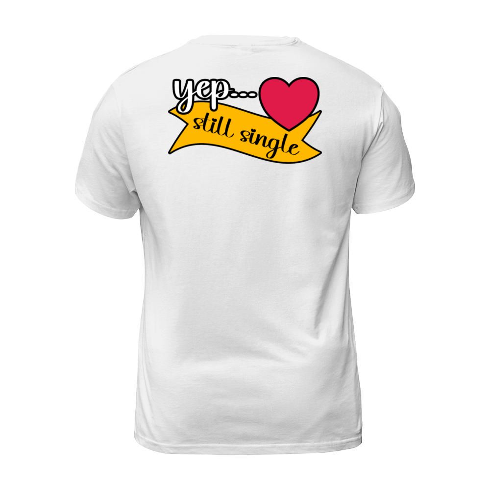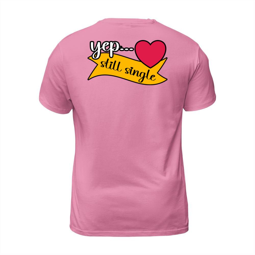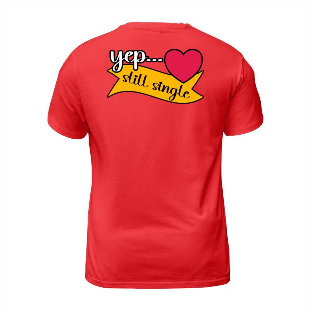 Shop Yep Still Single Valentines Day Heart Design T-Shirt Unisex custom made just for you. Available on many styles, sizes, and colors.