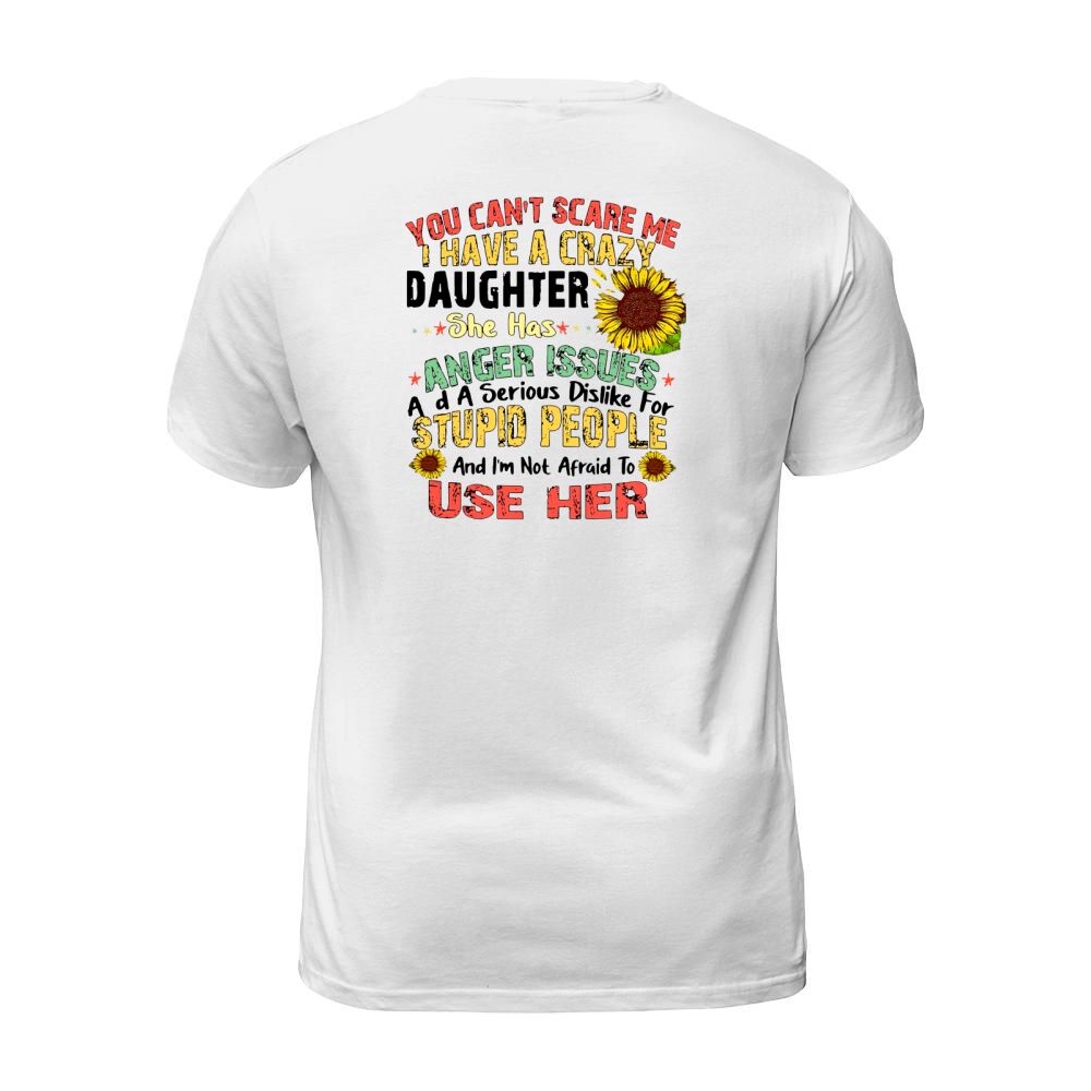 Shop You Can’t Scare Me I Have A Crazy Daughter She Has Anger Issues Flower T-Shirt Unisex custom made just for you. Available on many styles, sizes, and colors.
