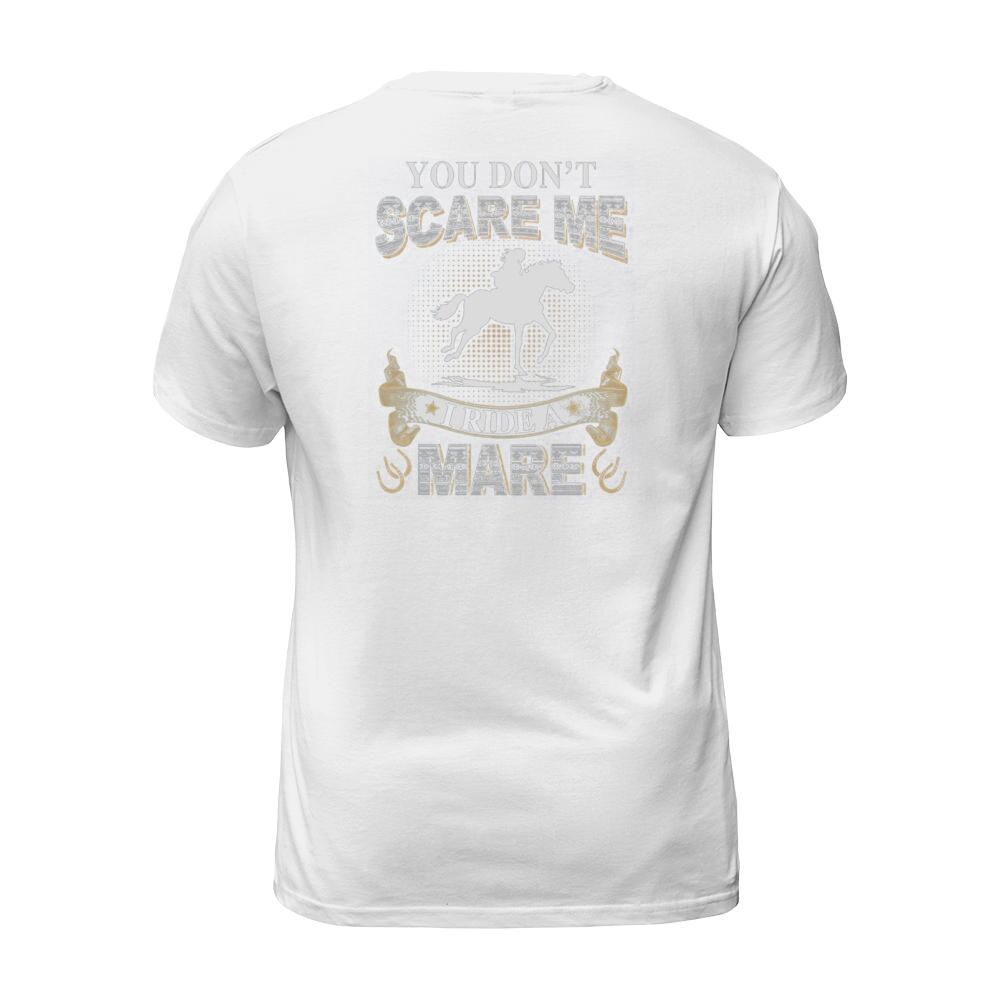 Shop You do not scare me I ride a Mare T-Shirt T-Shirt Unisex custom made just for you. Available on many styles, sizes, and colors.